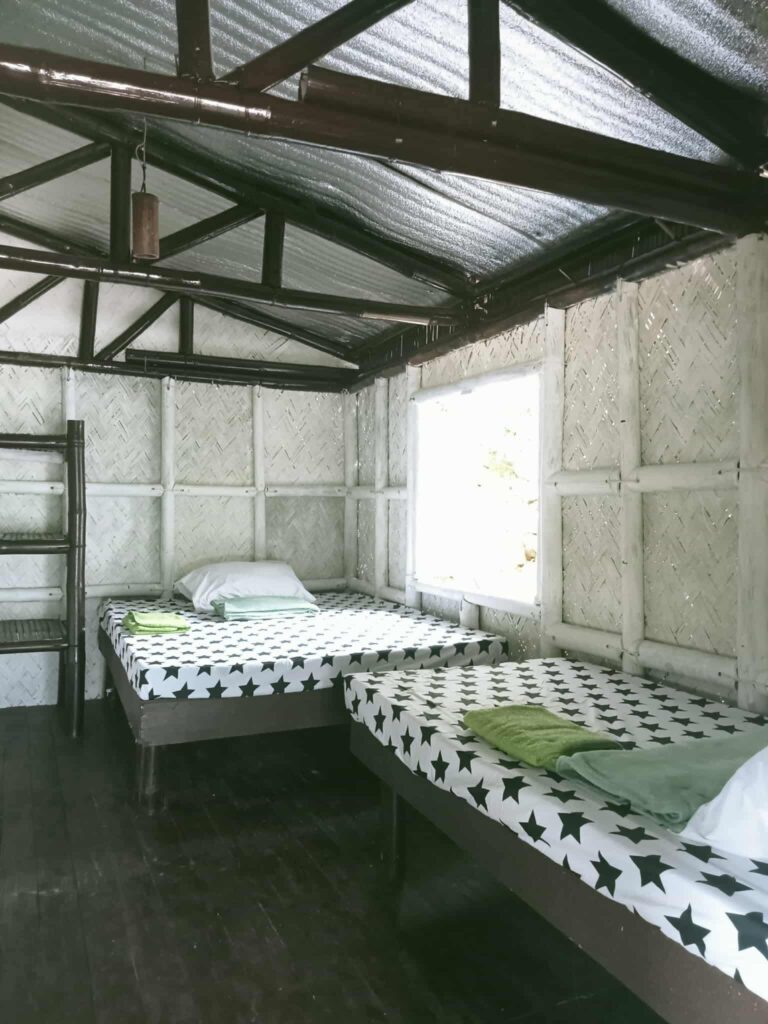 Simply furnished bamboo hut with four single beds. Perfect for a group of friends or if you are traveling on a budget.